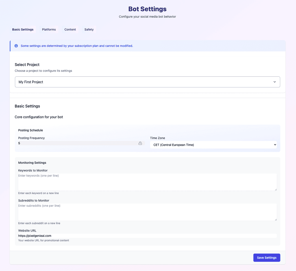 Customize every aspect of your social media automation with our comprehensive settings panel.